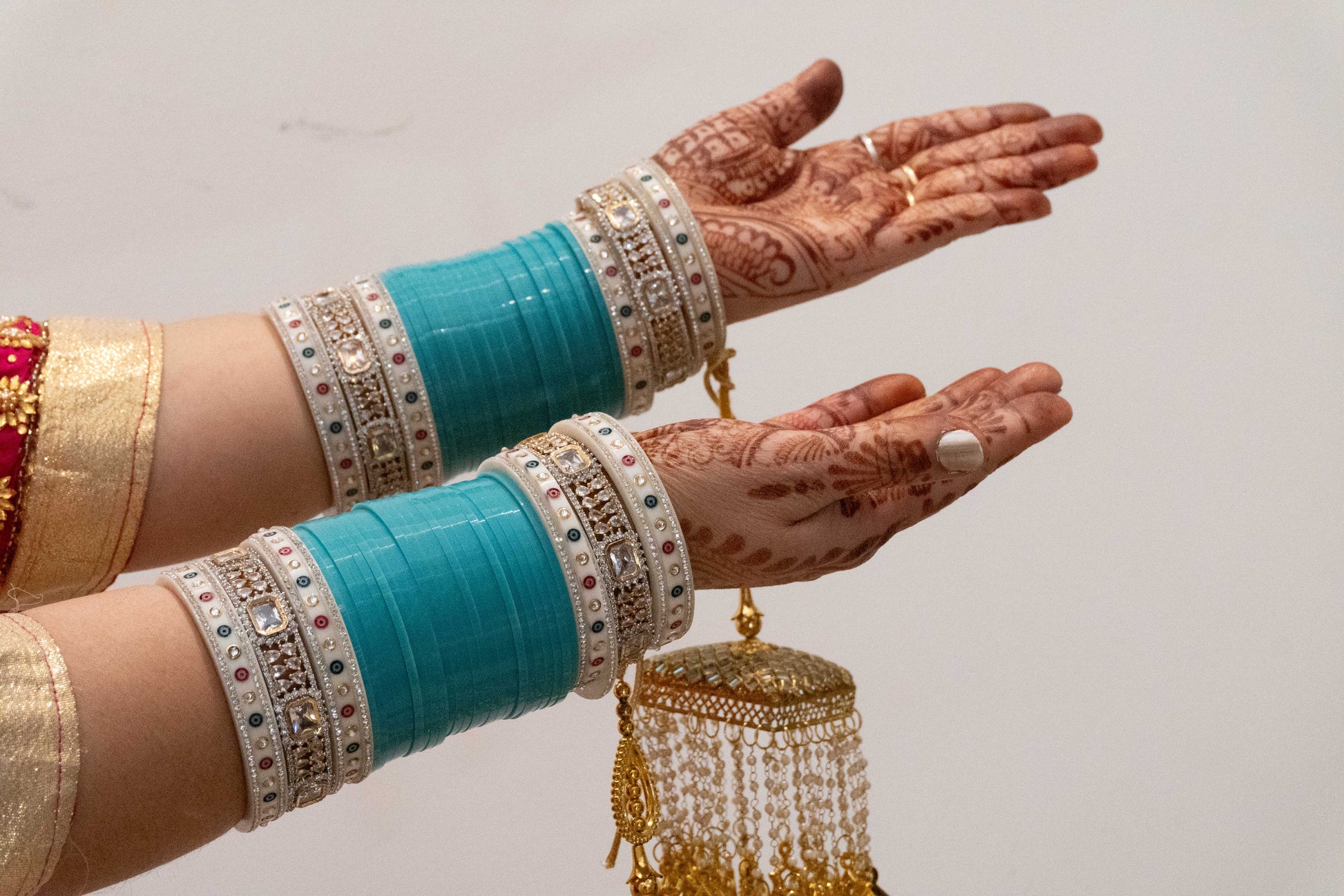Embrace tradition with a contemporary twist with our Aqua Glamour Chura, a perfect accessory that embodies timeless beauty and style. Make a statement on your special day with this gorgeous chura set that is as unique as you are.