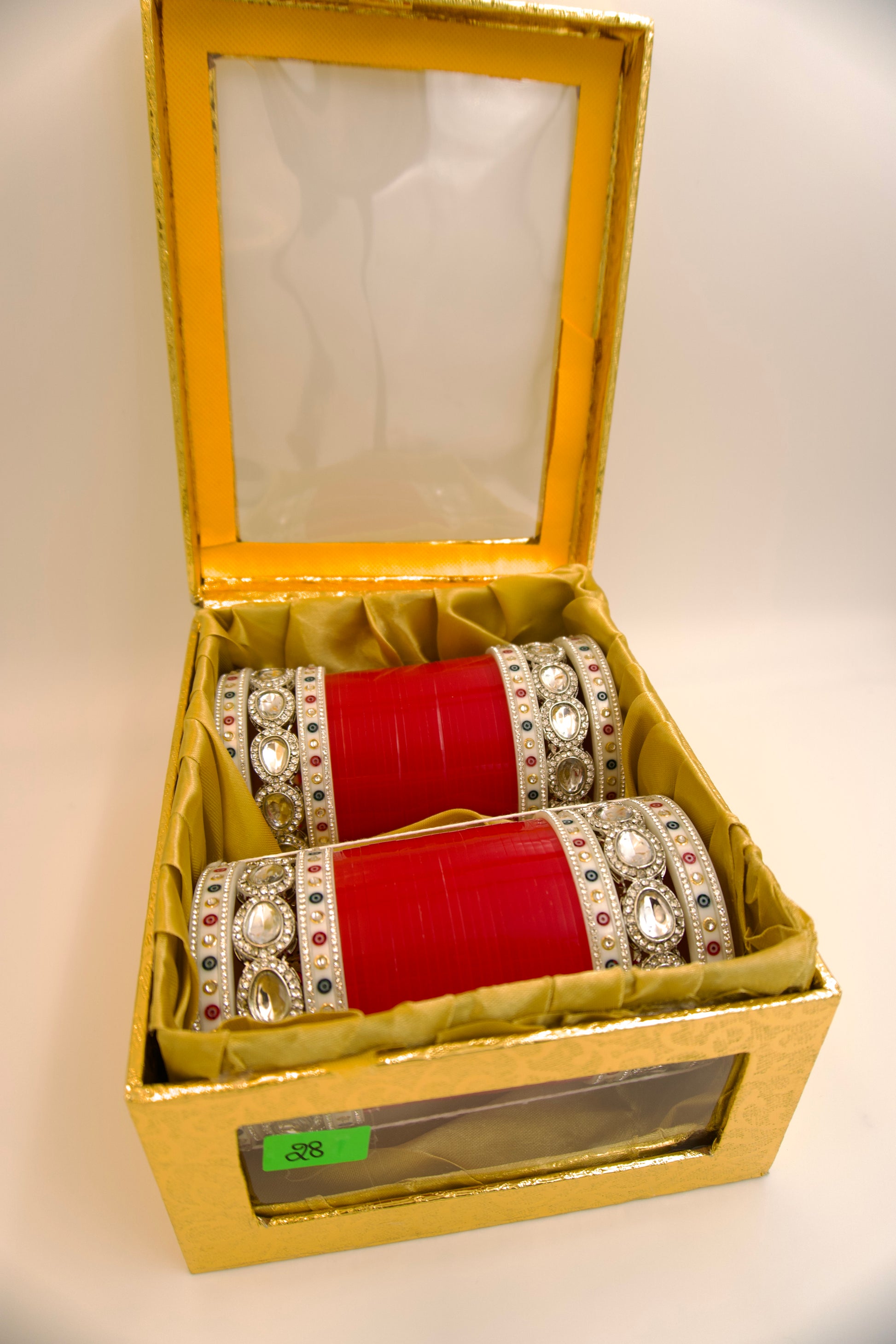 The deep maroon hue of the Shubh Laal Chura symbolizes love, prosperity, and the auspicious start of a new journey. Each bangle is crafted to perfection, ensuring durability and comfort, making it a cherished keepsake for years to come. Whether you're a bride looking for the perfect finishing touch to your wedding attire or searching for a meaningful gift, the Shubh Laal Chura is an ideal choice.