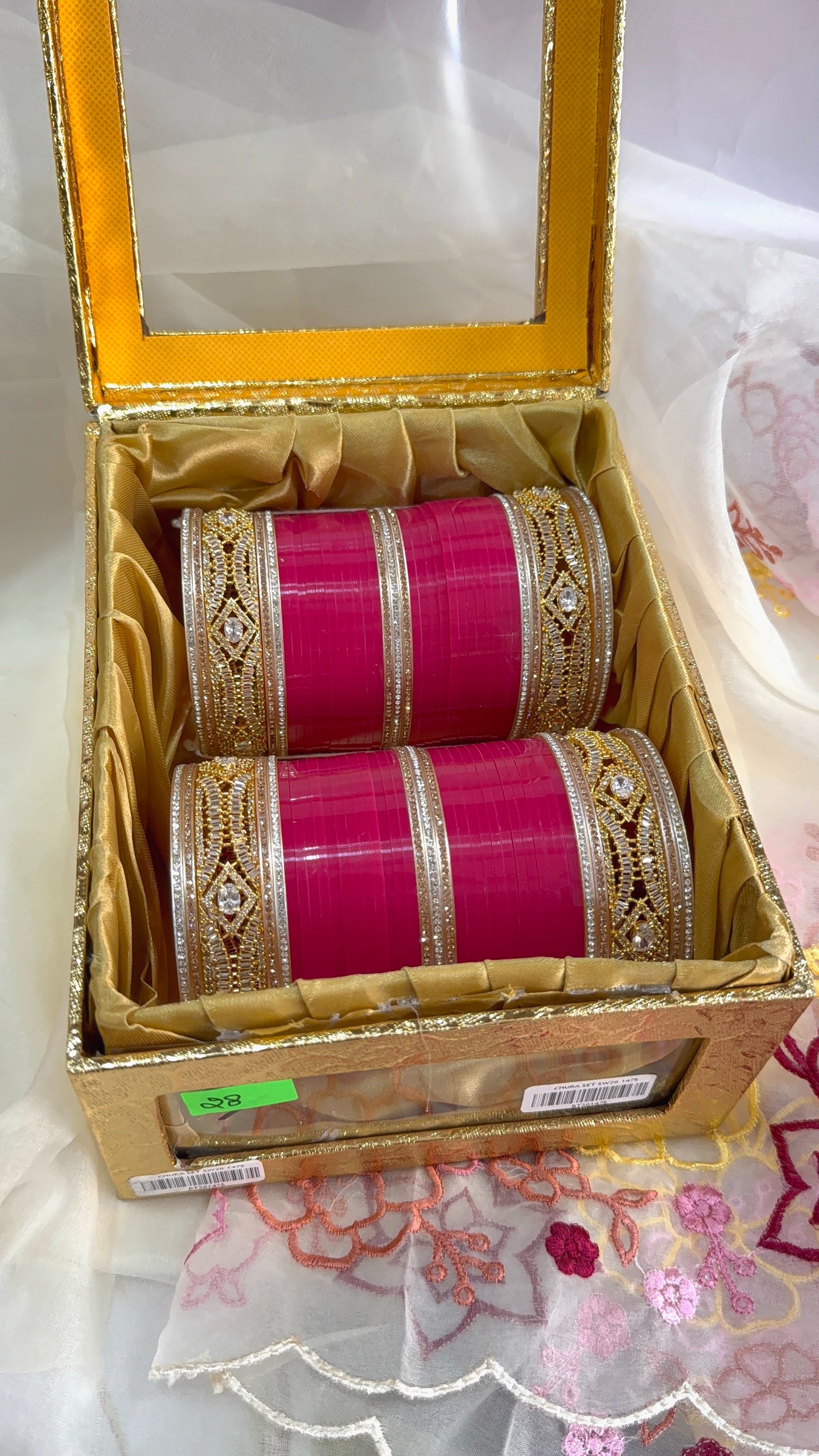 Whether you're a bride looking to complete your wedding attire or searching for the perfect gift, the Swarna Sindoor Chura with AD Bangles offers timeless beauty and elegance that will be cherished for years to come.